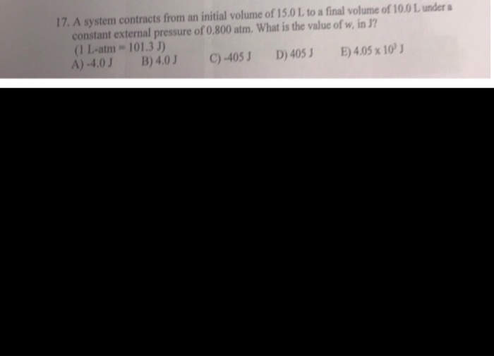 A system contracts from an initial volume of 150 L to a final volume of 100 L under a constant external pressure of 0800 atm. Chemistry questions and answers. Solved a system contracts from an initial volume chegg May 19th 2020 - a system contracts from an initial volume of 15 0 l to a final volume of 10 0 l under a constant external pressure of 0 800 atm the value of w in j is volume 10 initial d wiki fandom.